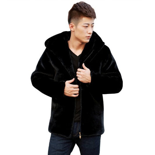 Herren Nerzfleecejacke Kurzer Reißverschluss Kapuzenmantel