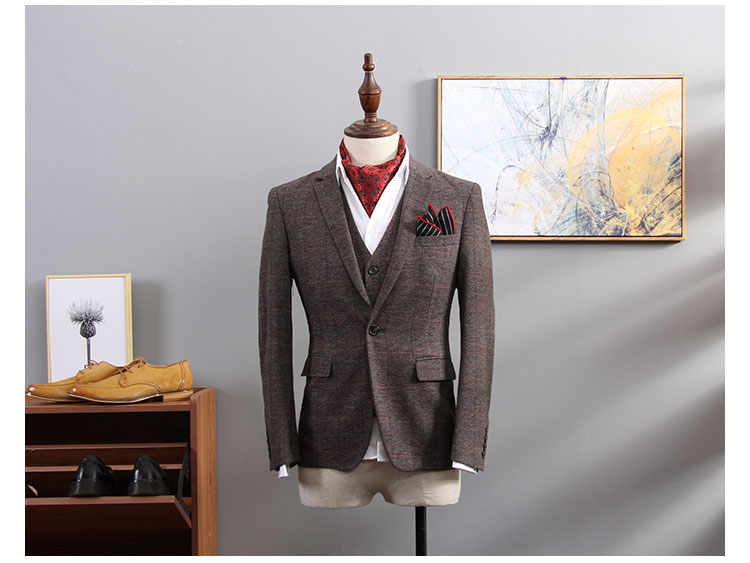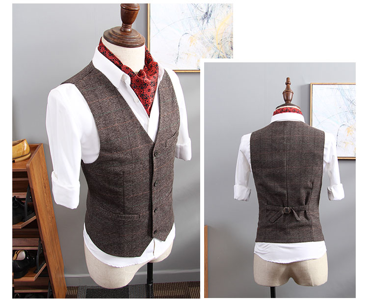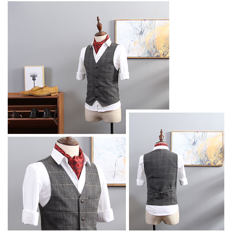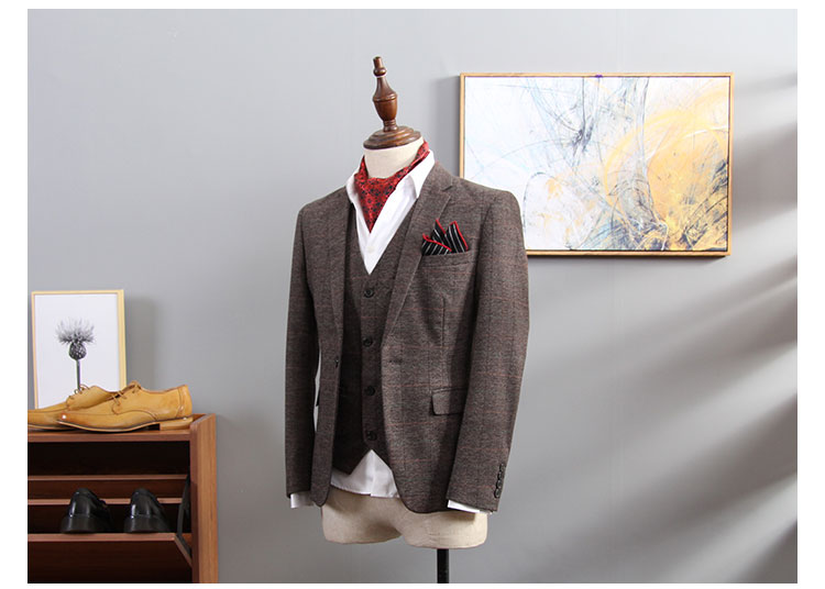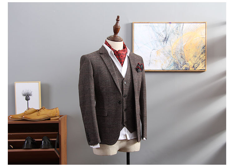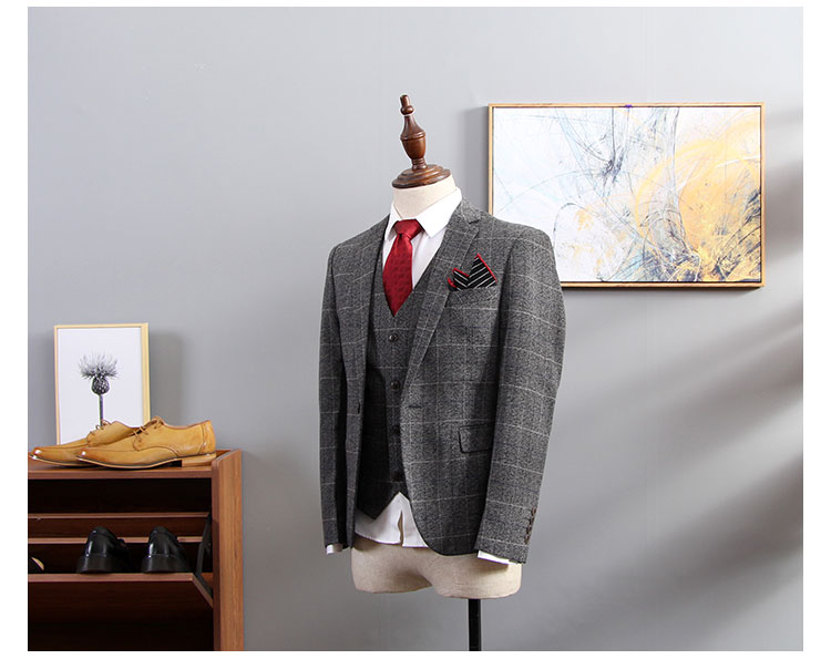 Retro Britischer Anzug Herren Dreiteilig Slim Plaid