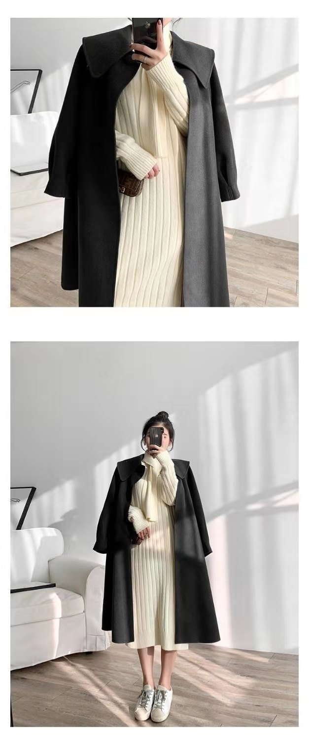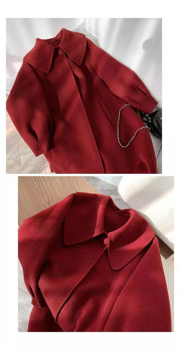 Retro Red Lapel Double-sided Cashmere Wool Coat Women