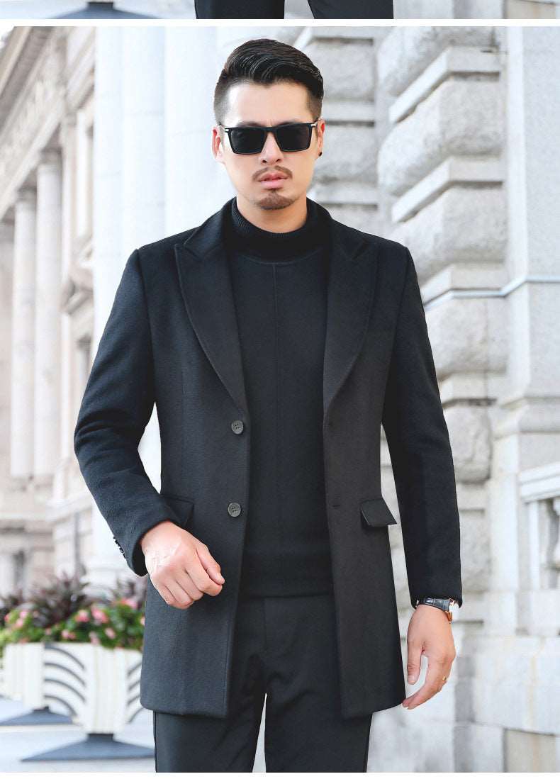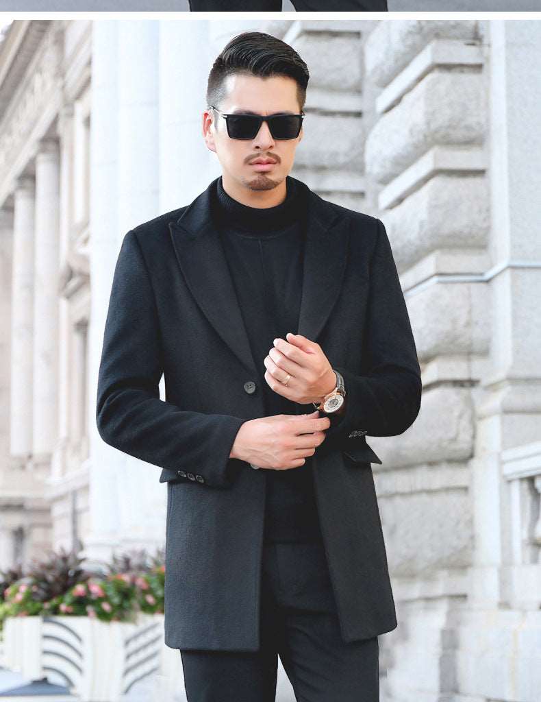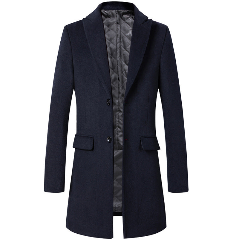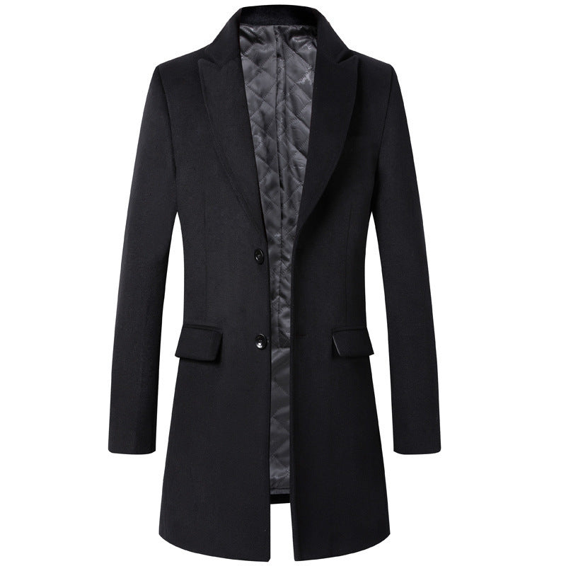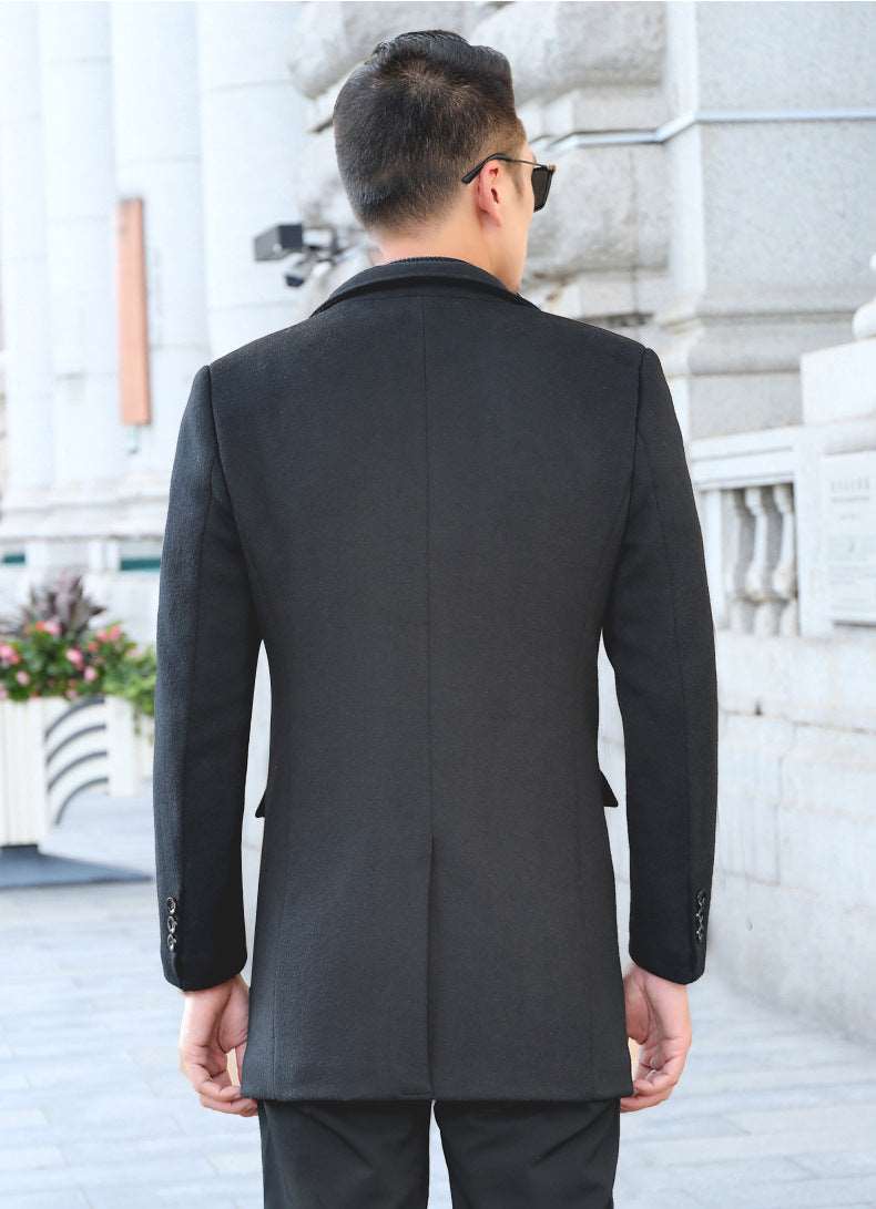 Single-Breasted Men's Woolen Thicken Korean Style Slim Coat