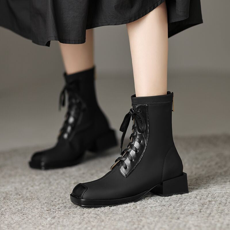 Women's Vintage Short Lace-up Skinny Stretch Martin Boots