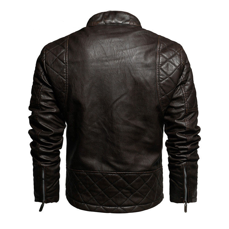 Fashion Slim Locomotive PU Leather Jacket Plus Velvet