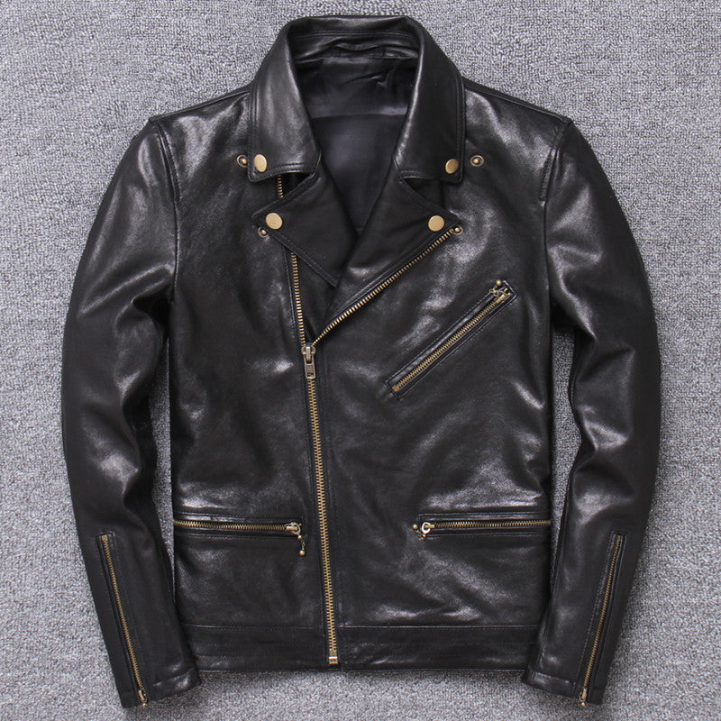 Lightweight Leather Leather Sheepskin Motorcycle Jacket Single Coat