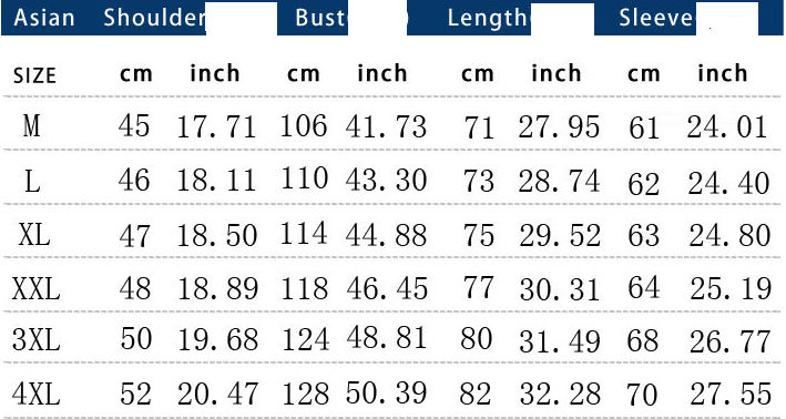 1. Asian sizes are 1 to 2 sizes smaller than European and American people. Choose the larger size if your size between two sizes. Please allow 2-3cm differences due to manual measurement. 2. Please check the size chart carefully before you buy the item, if you don't know how to choose size, please contact our customer service. 3.As you know, the different computers display colors differently, the color of the actual item may vary slightly from the following images.