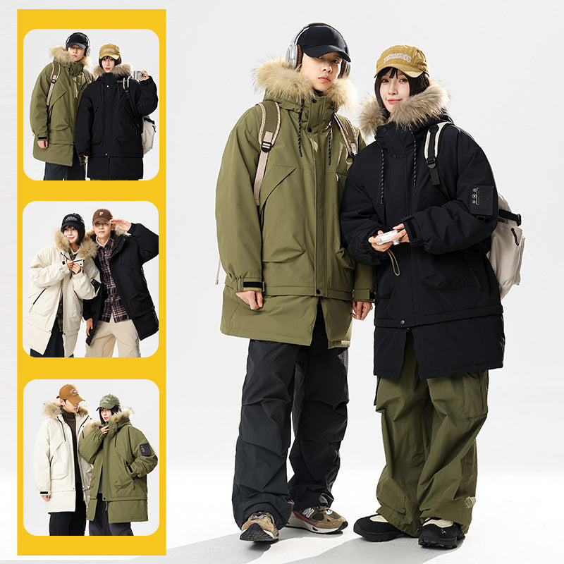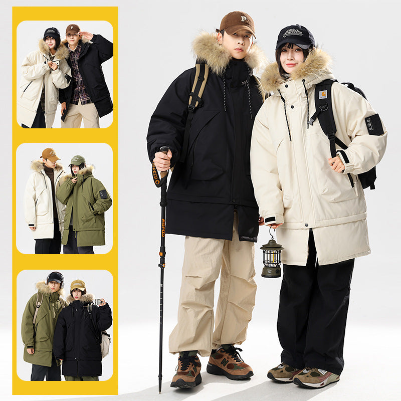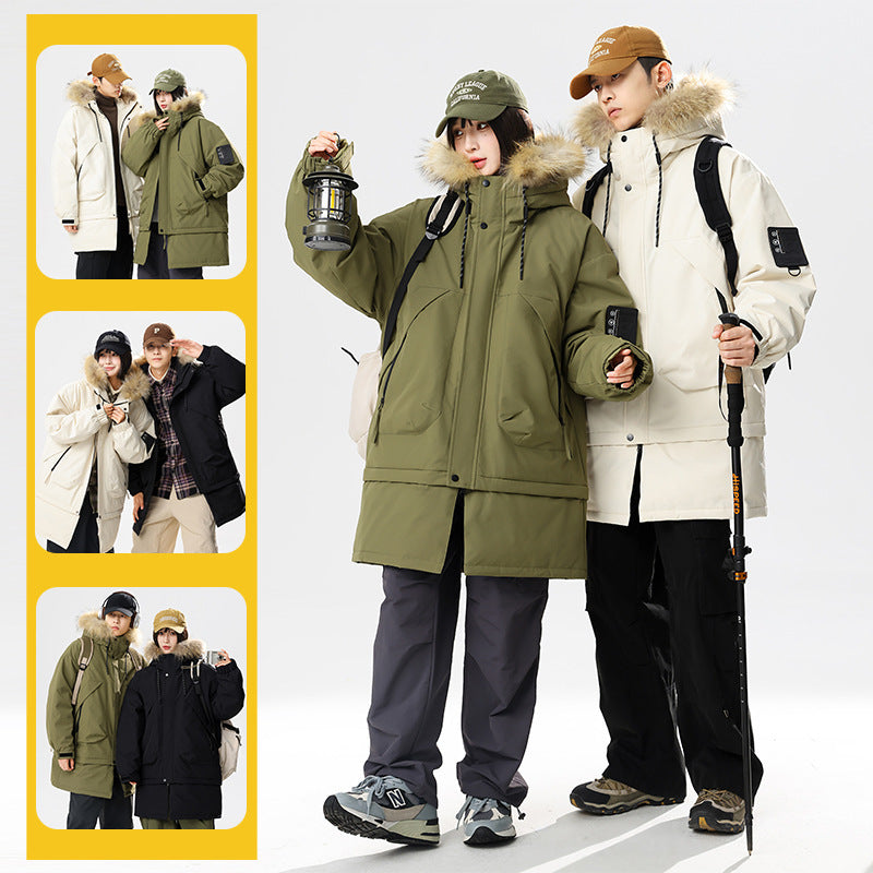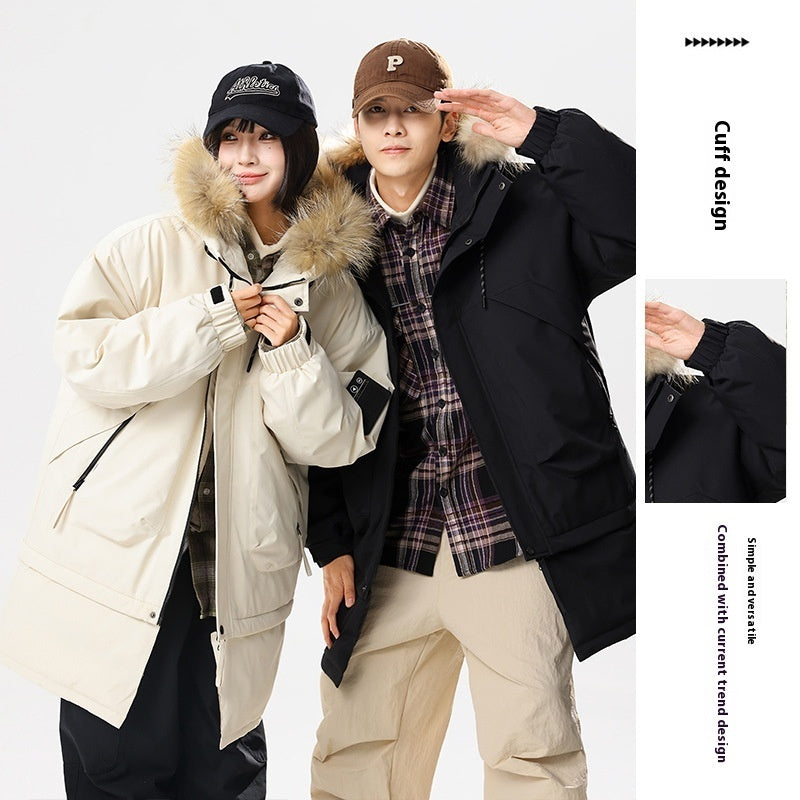 90 White Duck Down Hong Kong Style Mid-length Hem Fur Collar Detachable Warm Cold-resistant Couple Style