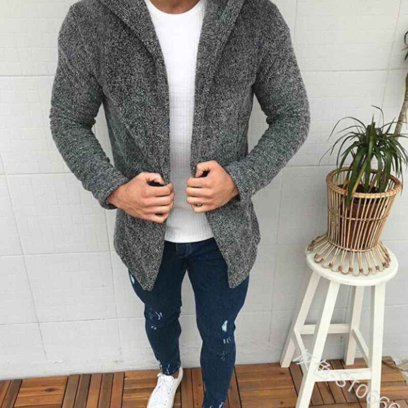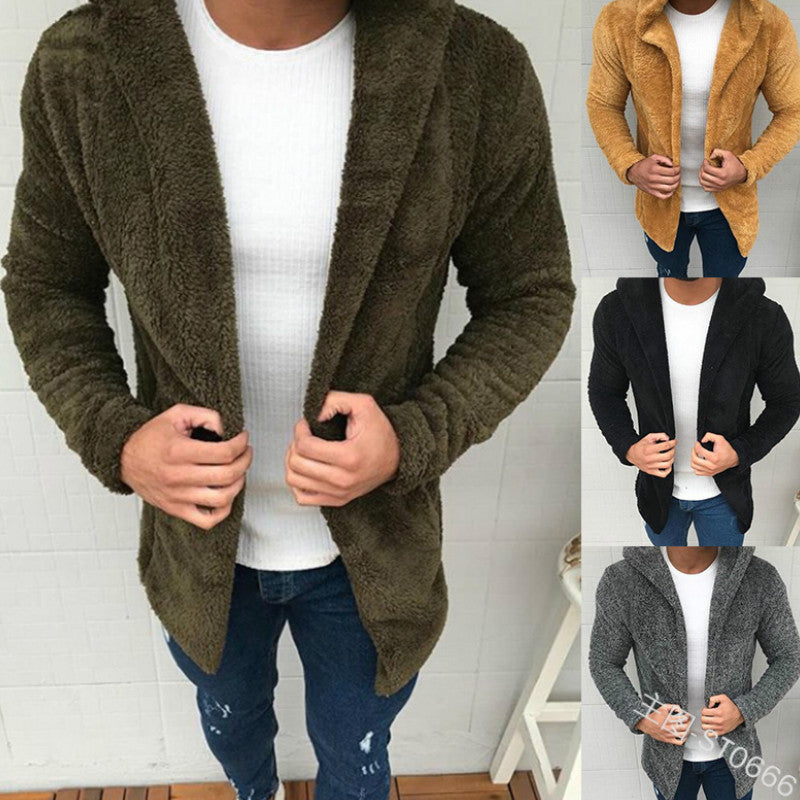 Casual Long sleeved Hooded Fluffy Jacket Men