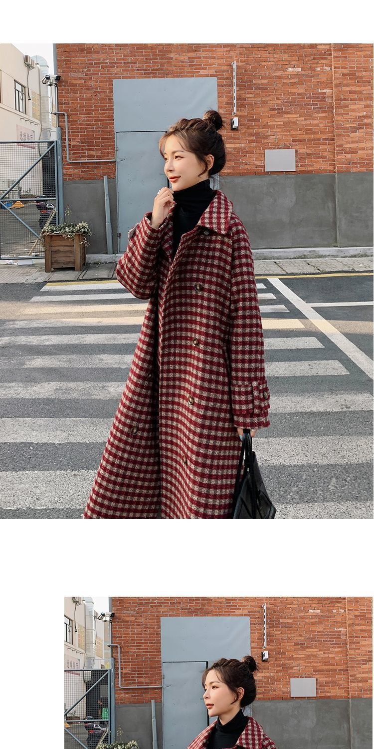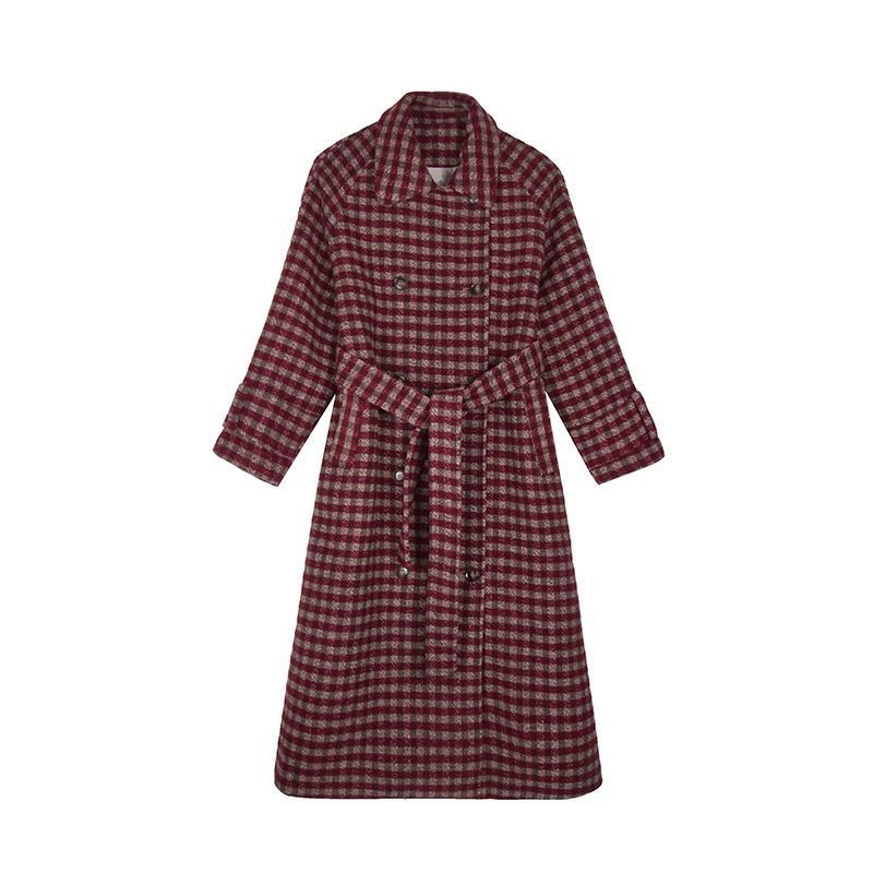 Fashion Plaid Woolen Coat Women's Mid-length Loose Waist Waist Popular