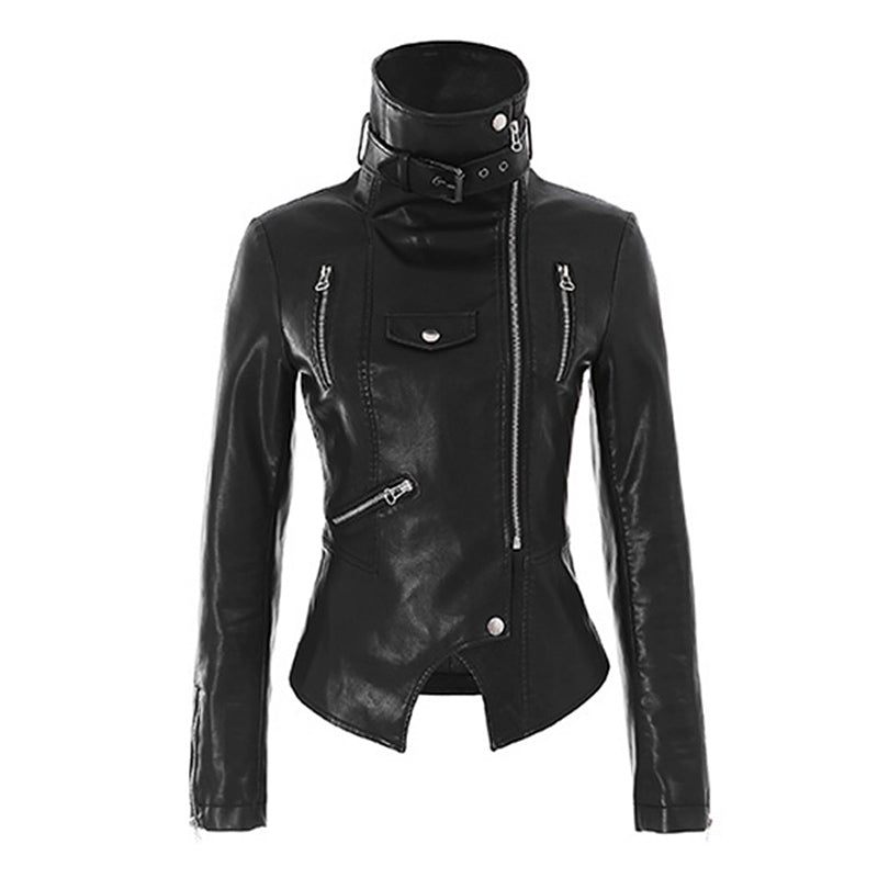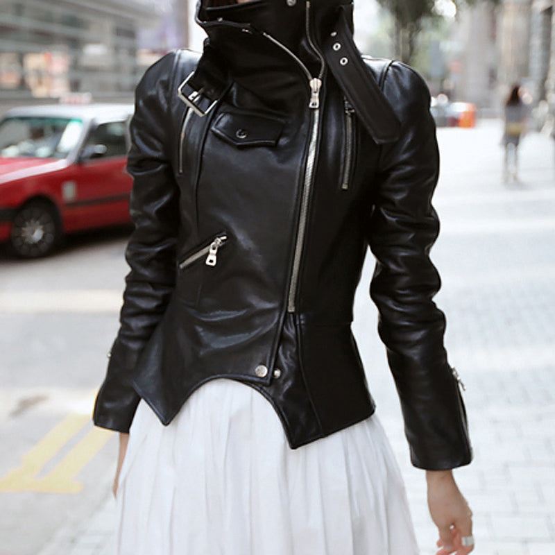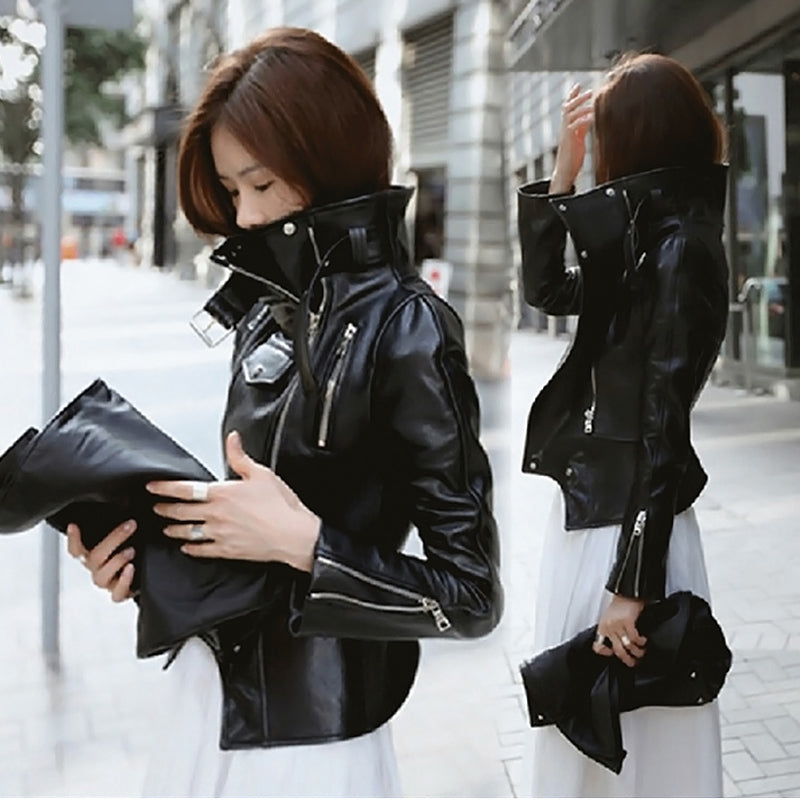 Leather women's jacket autumn 2021 new Korean students Slim thin motorcycle leather jacket high waist