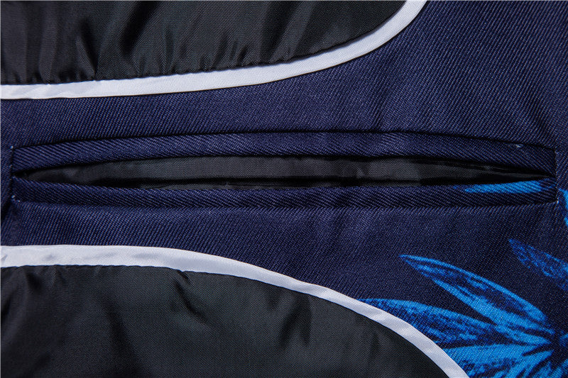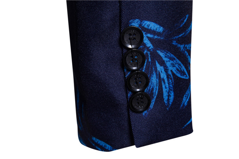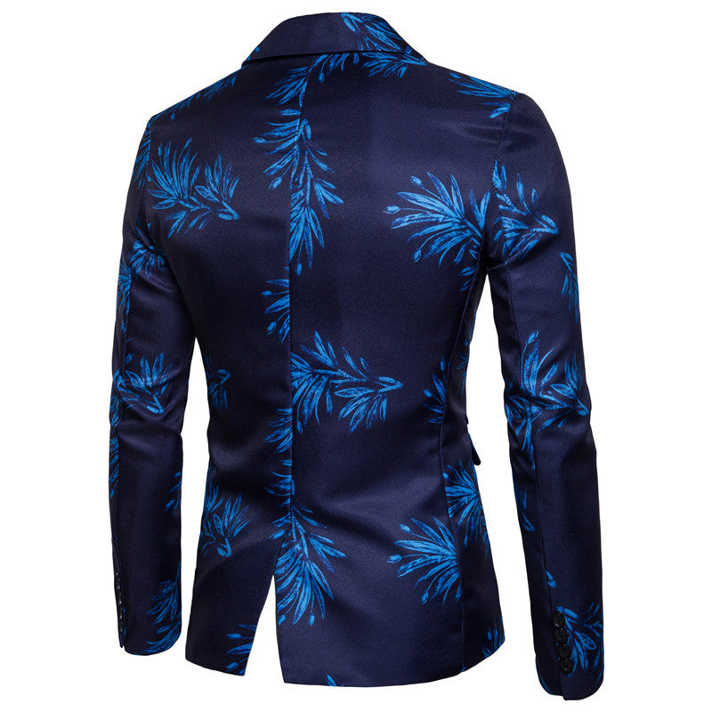 Men's European Size One Button Suit Red And Blue Flower Digital Printing