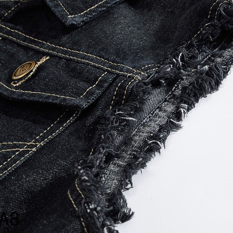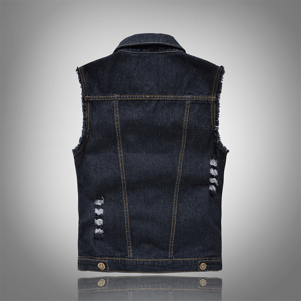 Men's large size black denim vest Korean version of the self-cultivation vest hole vest
