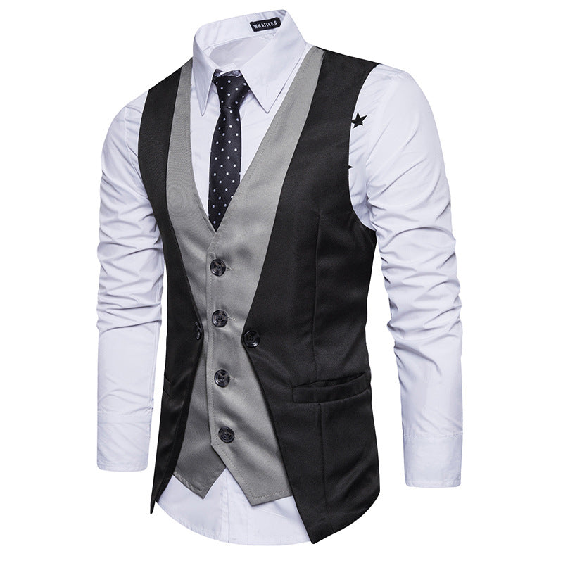 Men's new European code personality stitching suit vest men's cross-border fashion fake two men's vest