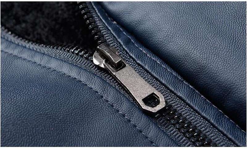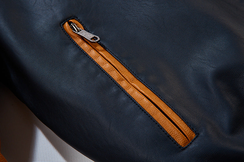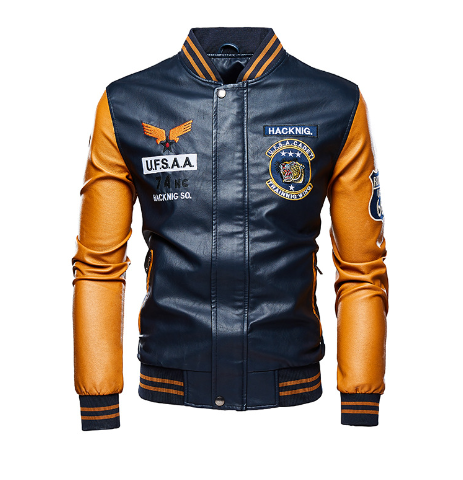 Men's Plus Fleece Cropped Leather Jacket Baseball Uniform
