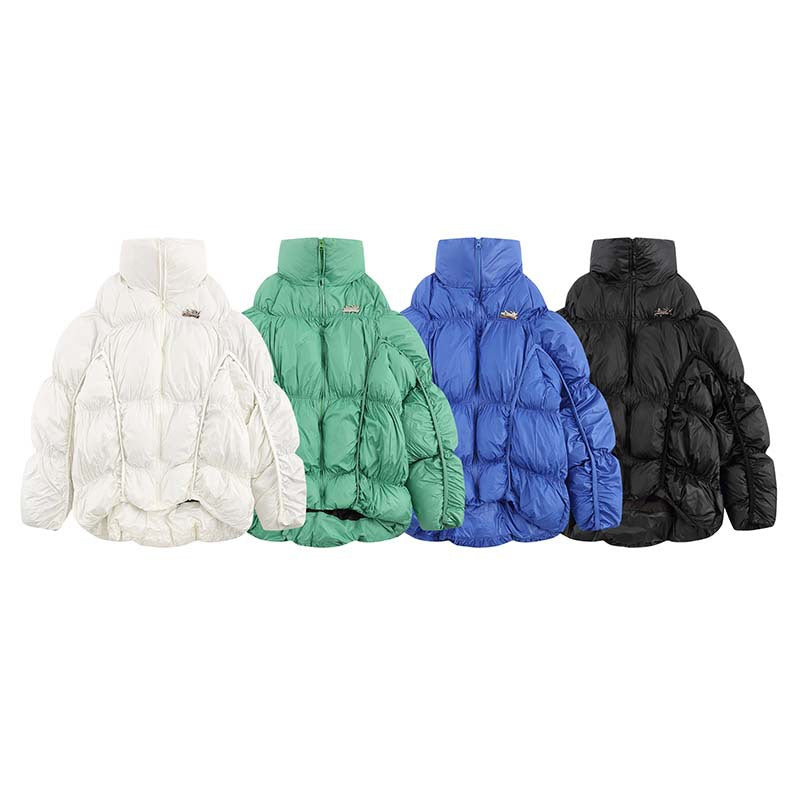 Men's Tide Brand Short Front And Long Back Thickened Stand Collar Cotton-padded Jacket