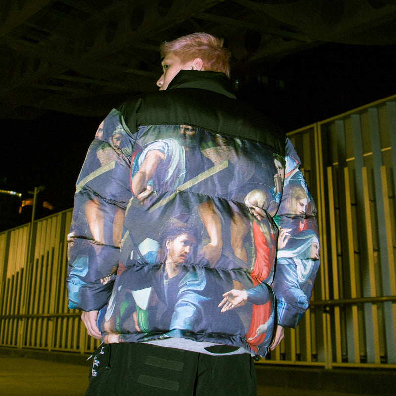 Religious Virgin Character Printed Cotton Jacket Men's Thicken Jacket