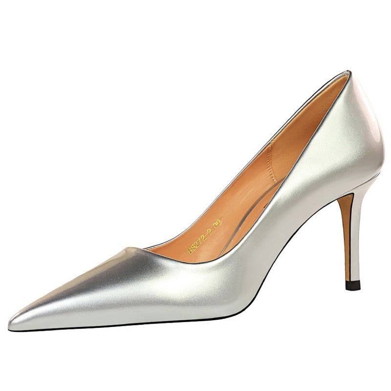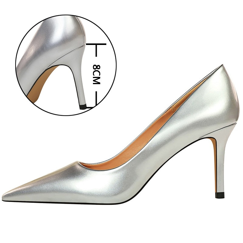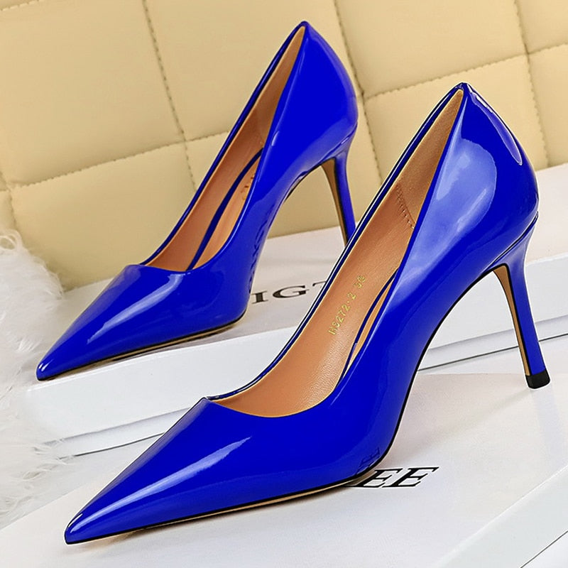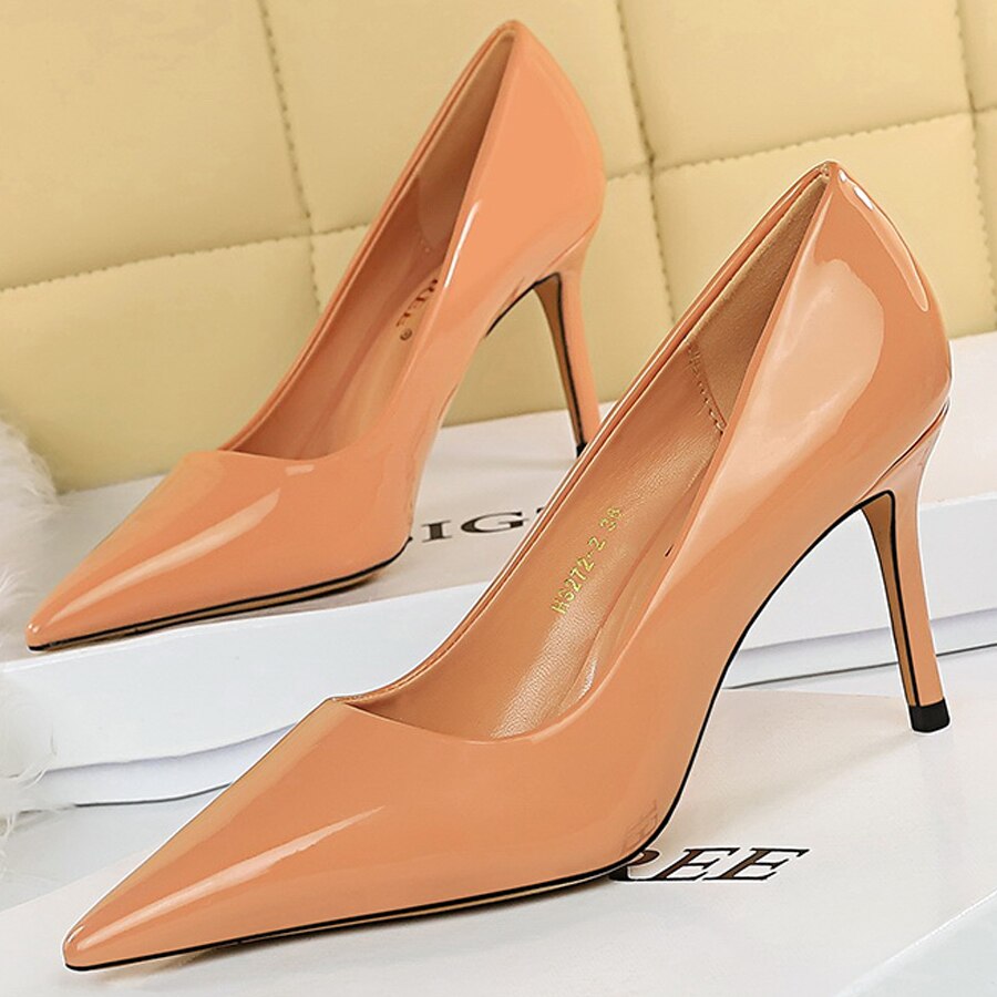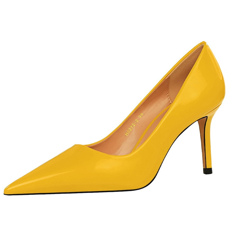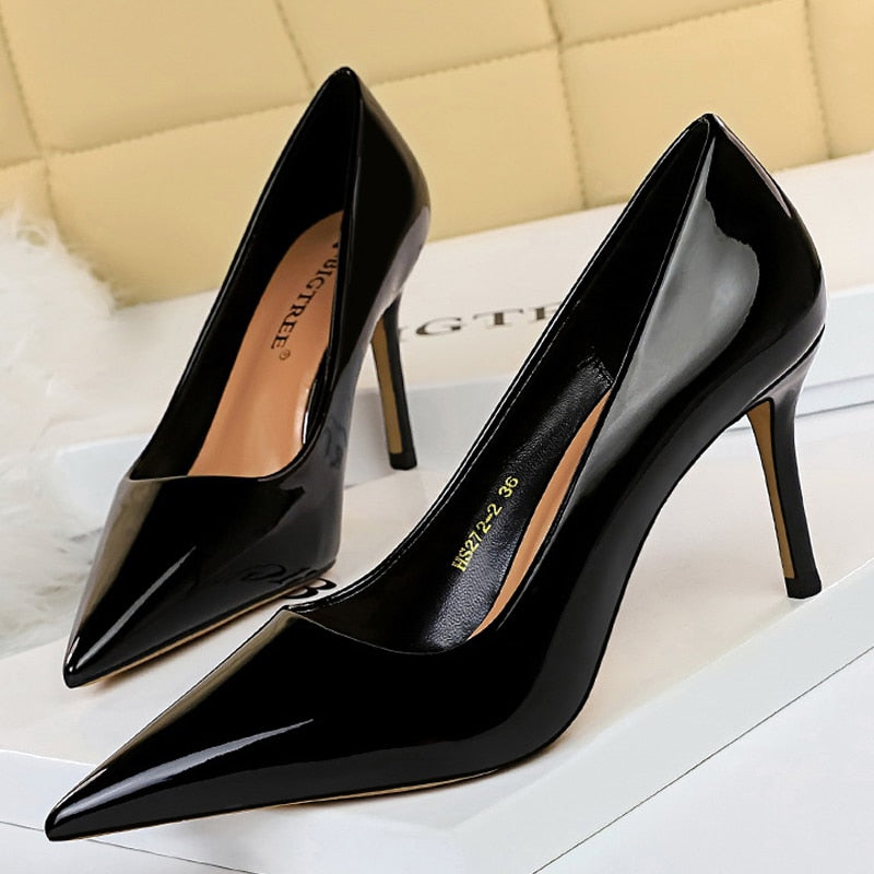 Simple High Heeled Glossy Patent Leather Shallow Mouth Pointed Sexy Thin Professional OL High Heeled Shoes