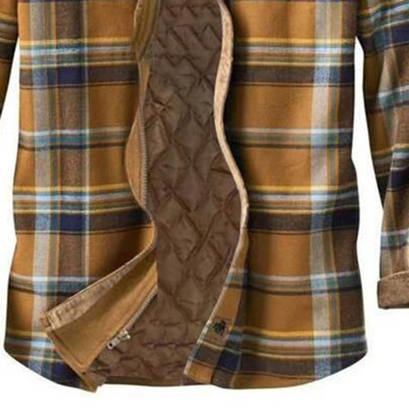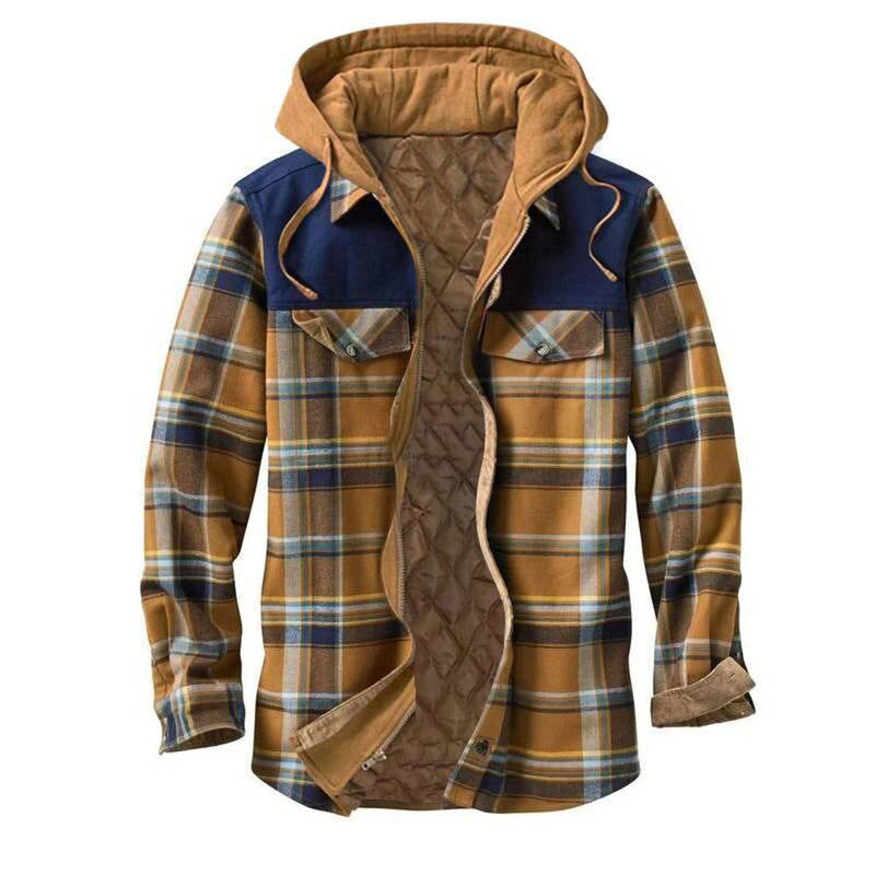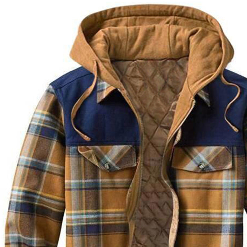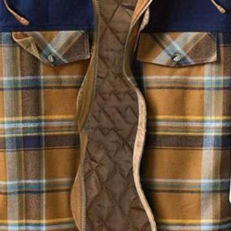 Thick Cotton Checked Long-sleeved Loose Hooded Jacket