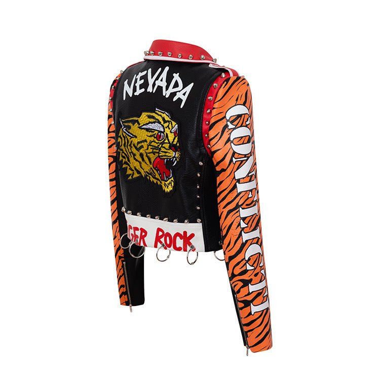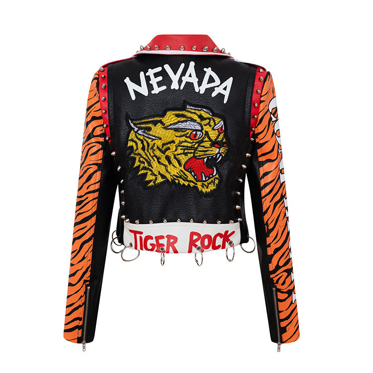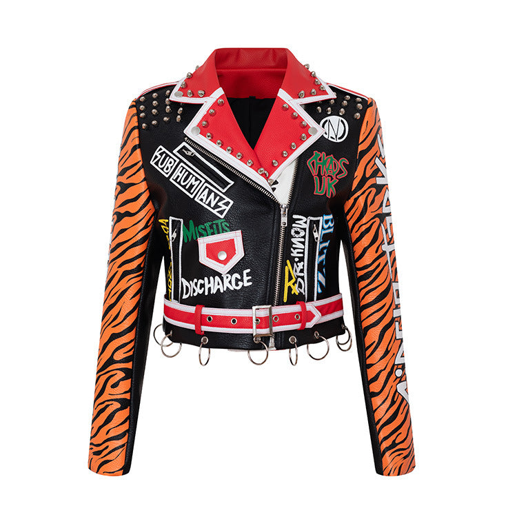 Women's Suit Collar Slim Long-sleeved PU Jacket